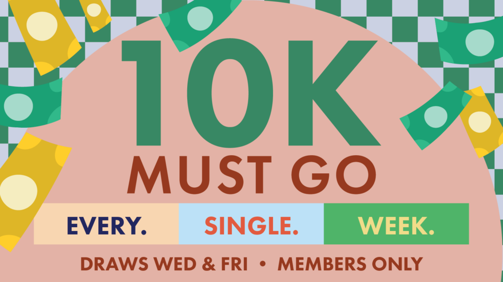 $5,000 is just waiting to be claimed every Wednesday evening from 7pm. If not claimed, the prize will JACKPOT to $10K CASH on Friday evening from 7pm & it MUST BE WON.